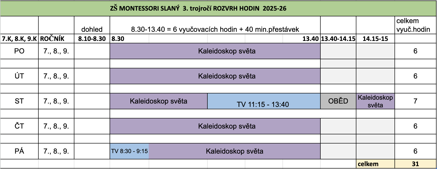 ROZVRH VYUČOVÁNÍ III. trojročí